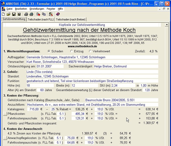 Die Methode Koch ist seit Jahren die höchstrichterlich anerkannte Grundlage für die Gehölzwertermittlung. Helge Breloer hat das Bewertungsformular für die Gehölzwertermittlung sowie die Teilschadenermittlung auf jeweils eine Seite zusammengefasst.